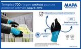 - Bénéficiant de la technologie Grip&Proof développée par Mapa Professional, le TempIce 700 a un excellent grip lors de la manipulation d'objets humides, ce qui réduit la fatigue musculaire.