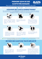 Mapa Professional vous recommande un protocole à mettre en place pour ce type de gant. Vous pouvez télécharger librement les posters et ainsi implémenter ce protocole auprès de vos équipes.